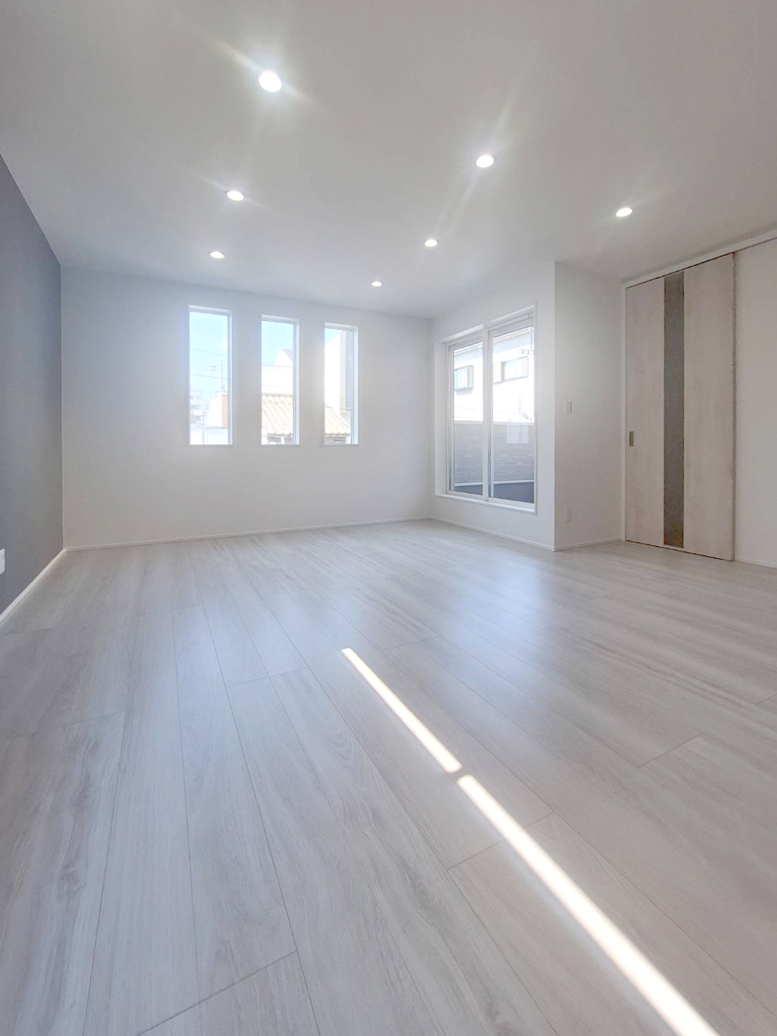 明るい配色と洗練されたデザインが魅力の新築3階建て住宅です。広々としたリビングは大きな窓から光が差し込み、柔らかな木目のフロアが空間に暖かさを添えます。収納豊富な玄関やシューズクローク、使い勝手の良いシステムキッチン、清潔感あふれるバスルームなど、毎日の暮らしを快適にする設備が充実。スタイリッシュで機能的な住まいをお探しの方にぴったりの一邸です。